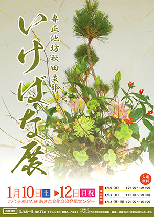 [概要]お正月にふさわしい豪華で、色鮮やかな花々が一堂に並ぶ展示会です。独創的なアレンジメント作品を香りとともにお楽しみください。初日に行われる恒例の公開生け込みも必見です!